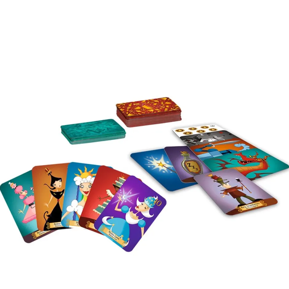 Consigue despertar a 5 reinas antes que nadie en este divertido juego de cartas. Hay 7 tipos de cartas especiales de acción y 12 cartas de Reinas. Cada carta especial tiene una función diferente y con ellas debes conseguir retrasar a tus oponentes del objetivo y ser el primero en lograrlo, ¿lo conseguirás?.