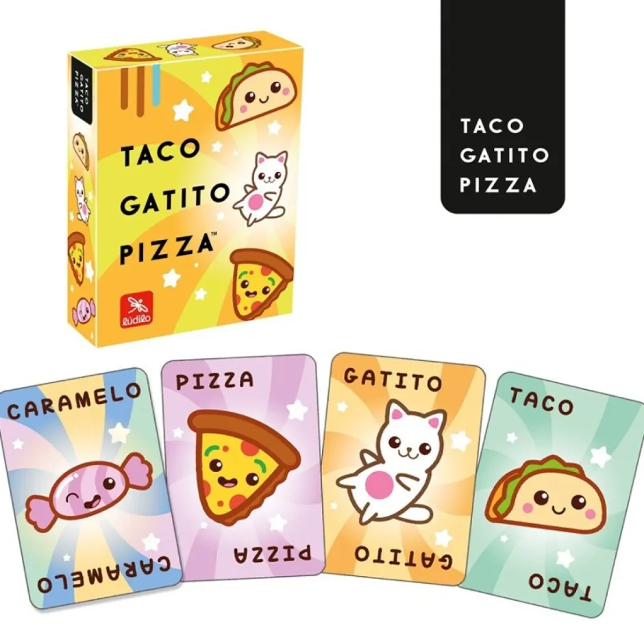 - Cuando sea tu turno tienes que decir una de estas tres palabras (la que quieras): TACO GATITO PIZZA mientras dás la vuelta a la carta de encima de tu montón.