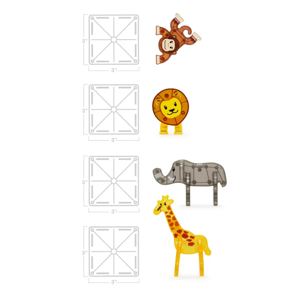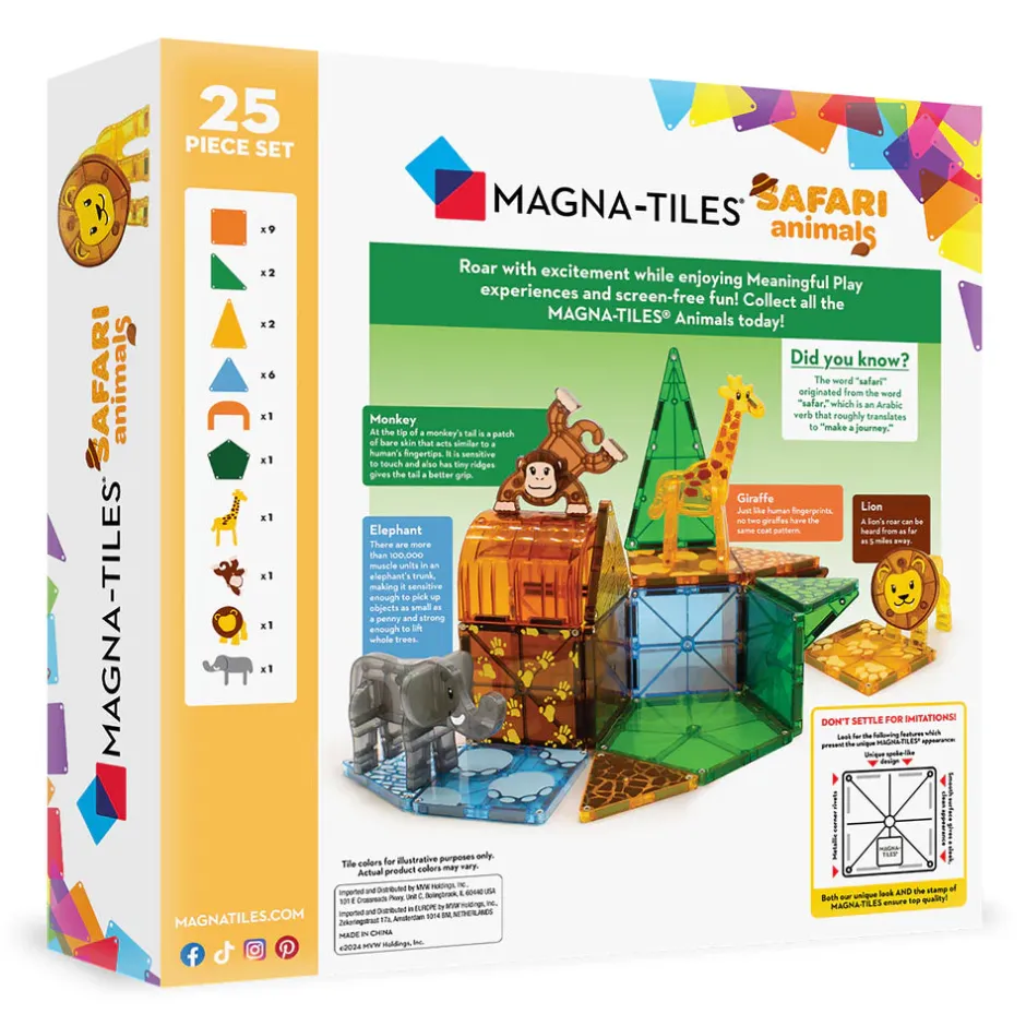 El juego de 25 piezas Magna-Tiles® Safari Animals está diseñado para años de tiempo de juego.