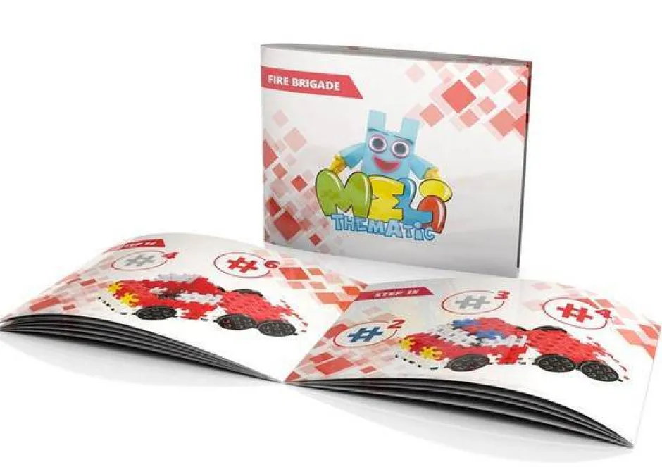 Esta caja contiene 160 piezas variadas para representar 4 vehículos de bomberos.