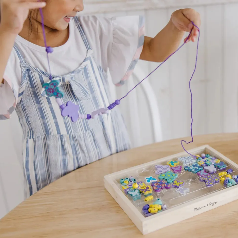 Bandeja de madera para guardar las piezas. La actividad perfecta para ensartar, hacer adornos y diseños Ideal para estimular las habilidades motoras finas, la habilidad de clasificar, de secuenciar y la creatividad