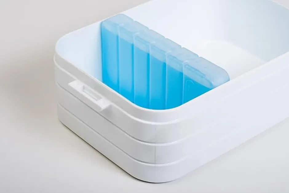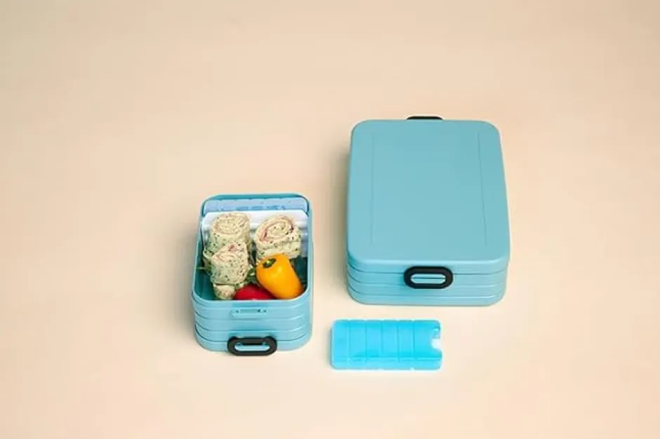 Práctica enfriador para cajas de almuerzo de Mepal. Coloque la bolsa de hielo en el congelador 10 horas antes de que planee usarla. ¡Tu almuerzo permanecerá agradable y fresco! ¡Está lleno de un líquido no tóxico, lo que lo hace perfectamente seguro!