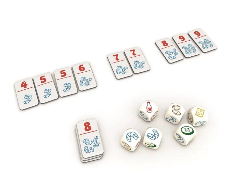 En esta nueva versión de nuestro clásico Piko Piko, los niños tendrán que ir lanzando los dados con los panecillos, el queso, el pepinillo… ¡para hacerse una deliciosa hamburguesa de gusanos!