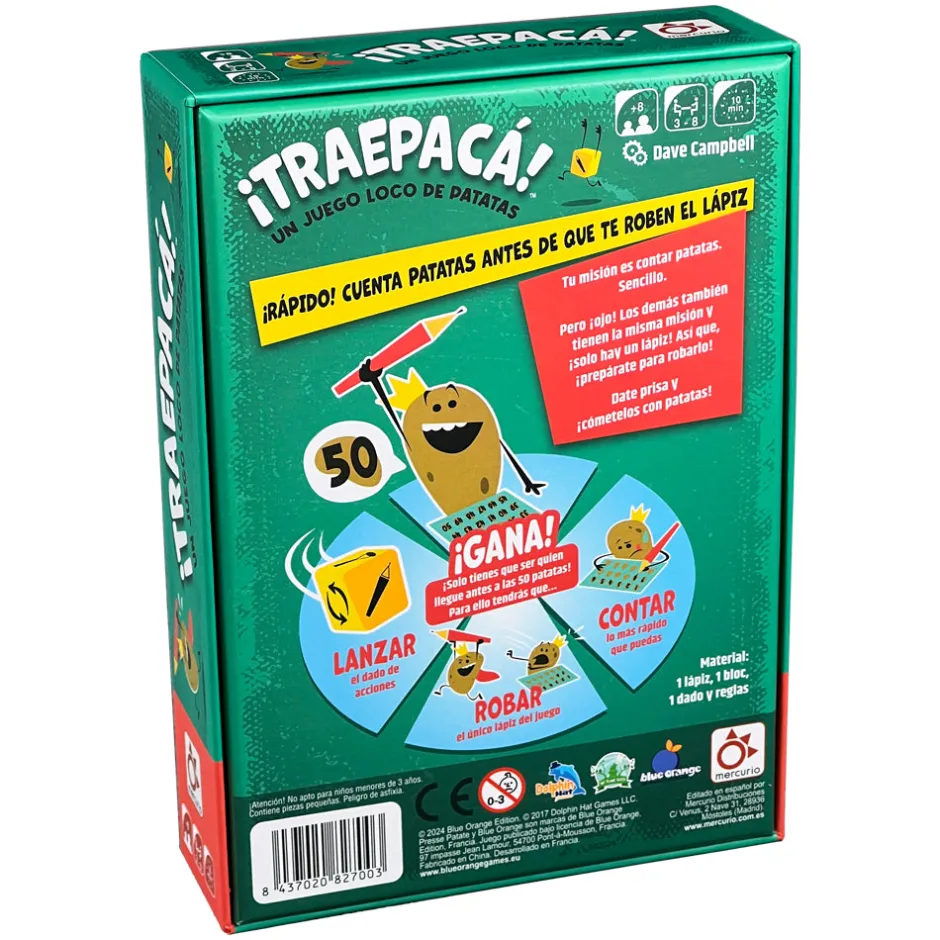 El ganador de ¡Traepacá! será el primer jugador en contar y numerar todas las patatas de su tarjeta.