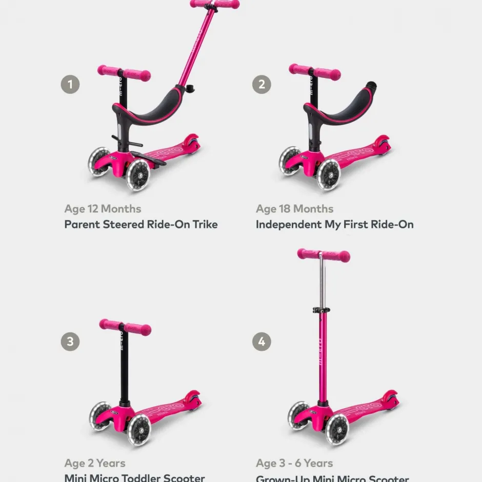 El Micro Mini 4en1 Deluxe LED es el compañero perfecto para los primeros años de vida de su hijo. Gracias a su multifuncionalidad, se puede utilizar a partir de los 12 meses y acompañará a su hijo hasta los seis años como mínimo.