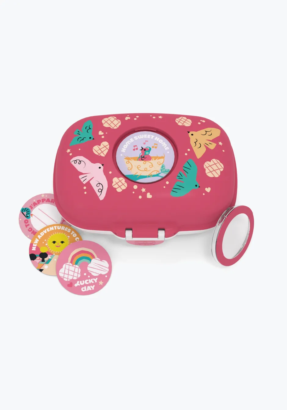 ¡Para volver su tartera totalmente única tenemos el escondite para pegatinas del MB Gram! Con motivos intercambiables, podrá decorarse con el nombre de su pequeño propietario o con el retrato de su héroe preferido. Gracias a este módulo de personalización, ¡olvídate de los riesgos de intercambios desafortunados de bentos en el recreo!