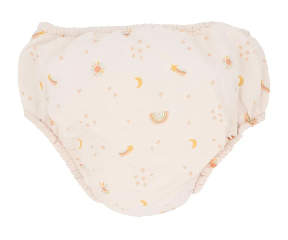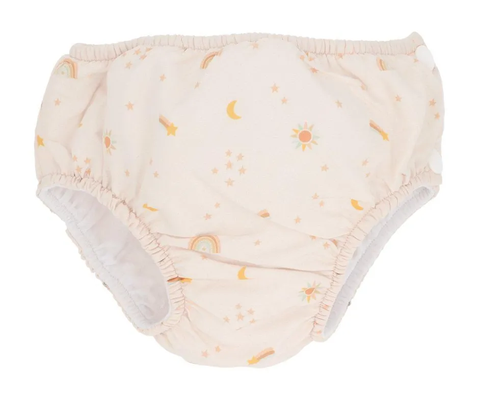 Bañador pañal de Monnëka que ha sido creado con una tela especial que protege a la piel de los rayos solares además que evita fugas sólidas cuando el peque se está bañado en la playa o la piscina.
