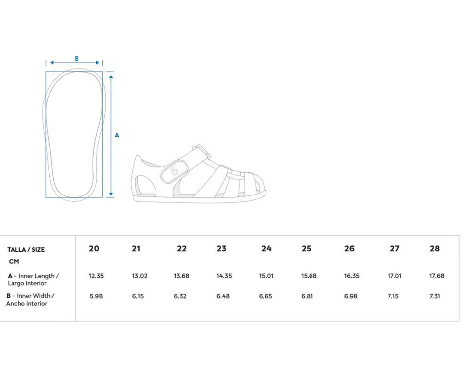 - ATENCIÓN: Las medidas de la tabla corresponden a este modelo en concreto y de la suela interior del zapato. Puedes compararla con la medida del pie de tu peque