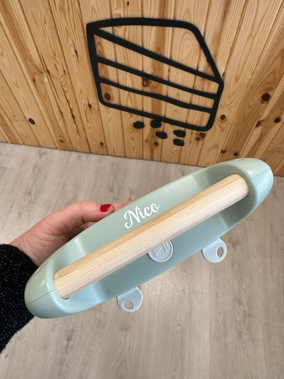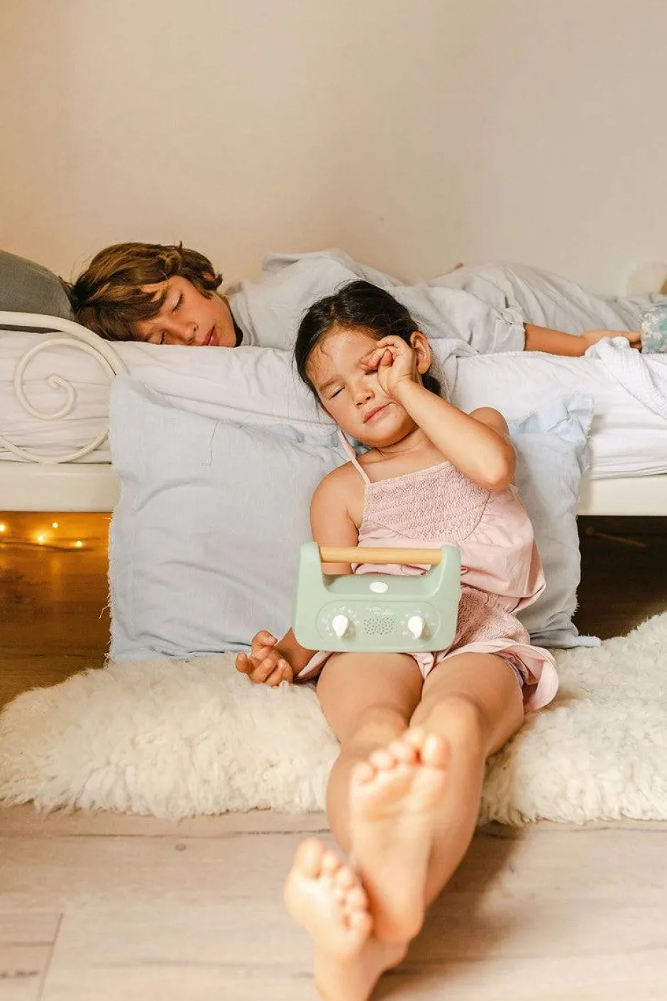 Se trata de un dispositivo, cuya forma recuerda a una radio portátil vintage, con un color y material suaves y natural. Está diseñado de forma que niños y niñas puedan manejarlo con autonomía, recurrir a él en el momento en que son conscientes de que necesitan bajar de revoluciones y seleccionar de qué forma utilizarlo según el momento concreto