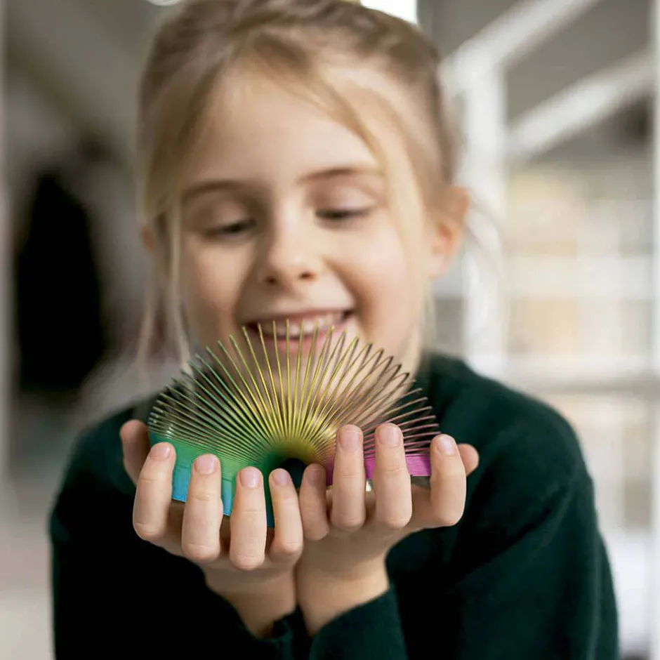 Muelle de metal RAINBOW. Divertido bajador de escaleras. Hecho de metal.