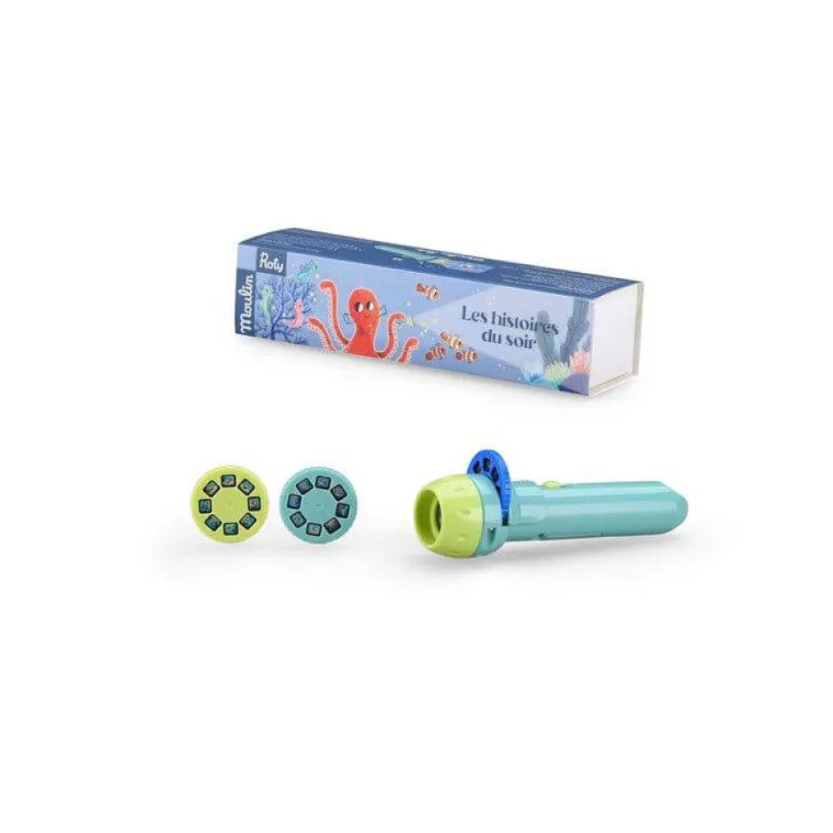 Contiene 1 linterna y 3 discos de historias.