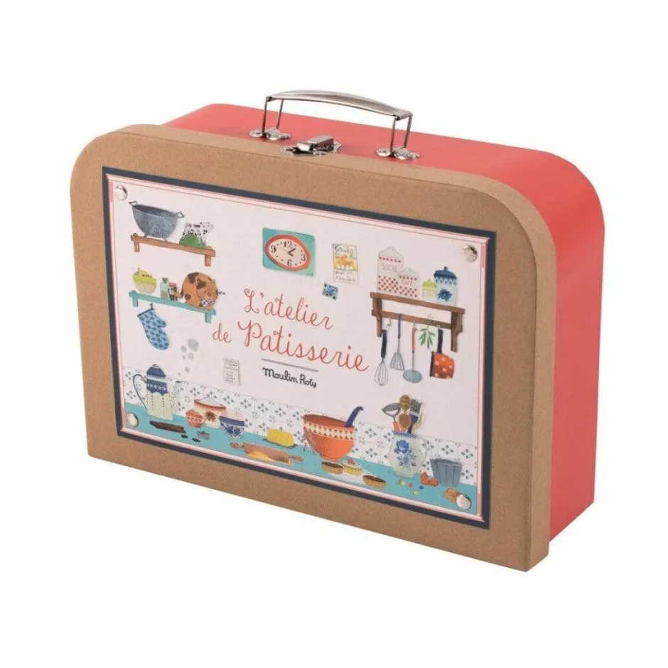 Esta pequeña maleta de estilo retro tiene todo lo que necesita para hacer las cosas grandes: un libro de recetas, agarraderas, utensilios, cortadores de galletas en forma de corazón y 3 moldes para hornear antiadherentes que se pueden hornear. Gracias a los diferentes elementos que contiene, y a su tamaño adaptado a los pequeños, dará sus primeros pasos fácilmente en la cocina. ¡Esta maleta es perfecta para futuros pasteleros!