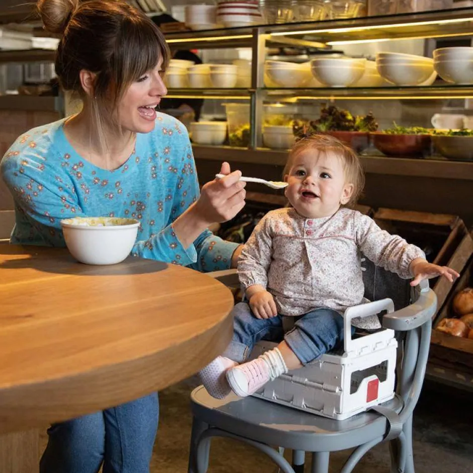 Ábrela fácilmente con 2 movimientos, y tendrás una trona cómoda y segura para fijarla a cualquier silla convencional. Su superficie anti-deslizante proporciona una comodidad adicional para tu bebé.