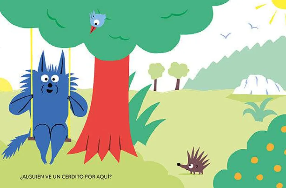 Este lobo busca al cerdito por todos sitios: en el árbol, detrás de la roca o dentro de la casa. El cerdito se esconde hasta que… ¿Qué ocurrirá cuando el lobo encuentre al cerdito?
