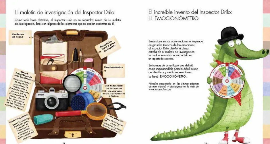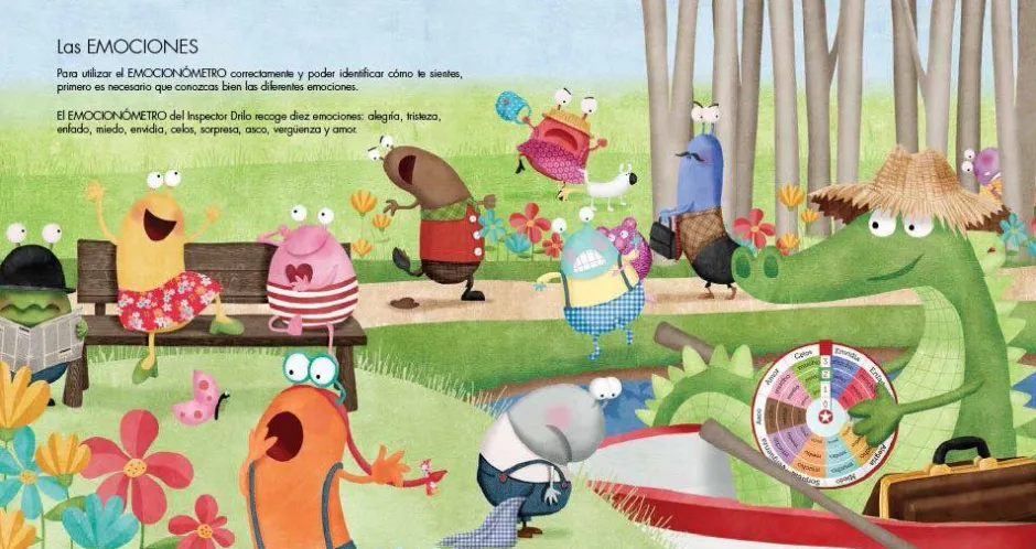 El Inspector Drilo nos ayudará a entender las diez emociones básicas con su gran invento: el EMOCIONÓMETRO. Sabremos qué sentimos con esta rueda de emociones.