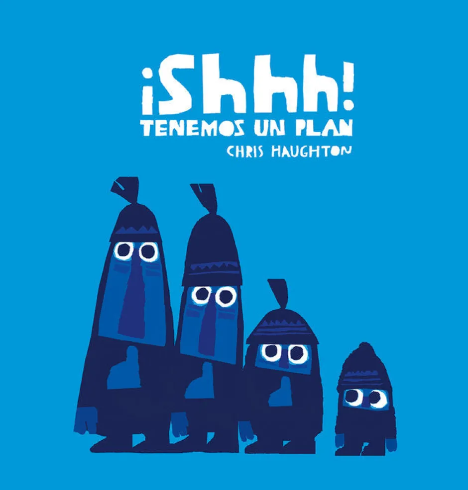 Cuatro personajes caminan en el bosque con un cazamariposas. Cuando ven un pajarito, empiezan a moverse despacito y sin hacer ruido. íShhhh! !Tenemos un plan!