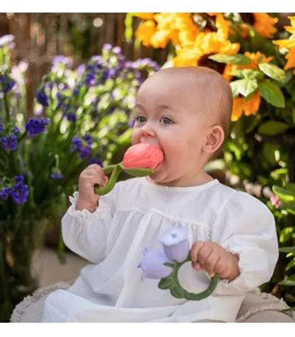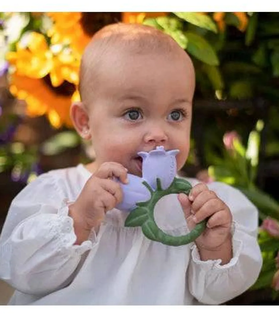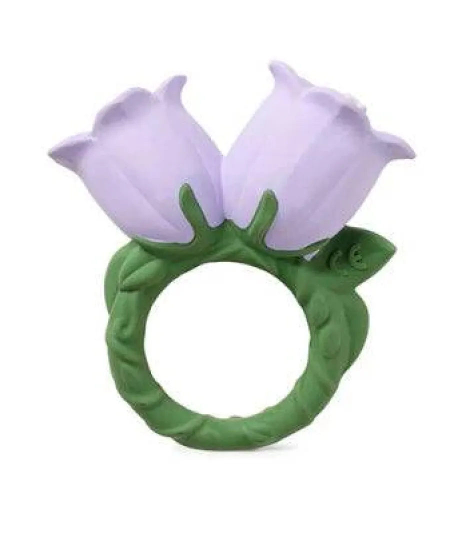 Ding, ding ding! Cindy the Bellflower es un mordedor, juguete de baño y juego sensorial para bebés. Su diseño en forma de anillo hace que las manitas de los bebés puedan sostenerlo fácilmente mientras utilizan un mordedor natural y seguro. Su amplia variedad de texturas también estimulará los sentidos del bebé y calmará las encías durante la dentición.