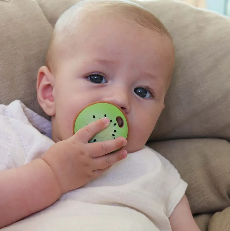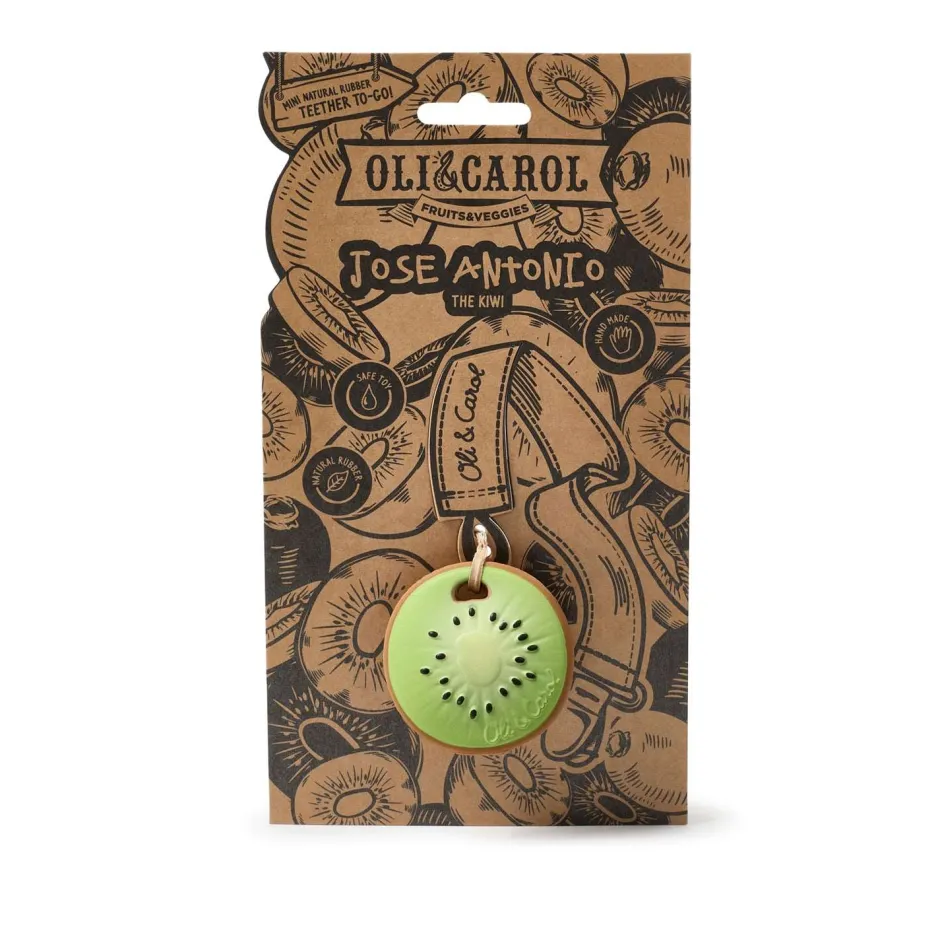 José Antonio el Kiwi es un mini-mordedor perfecto para los bebés. Diseñado con una forma ergonómica que facilita la sujeción cuando se usa como mordedor. Los pequeños descubrirán texturas muy realistas y puntos elevados, lo que lo hace muy agradable a la vez que alivia las encías de la dentición.