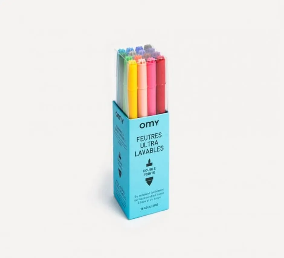 16 rotuladores de punta de fieltro ultra lavables.