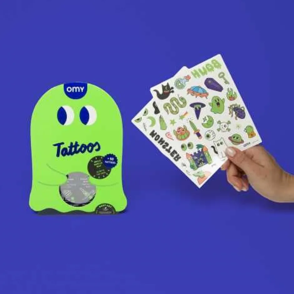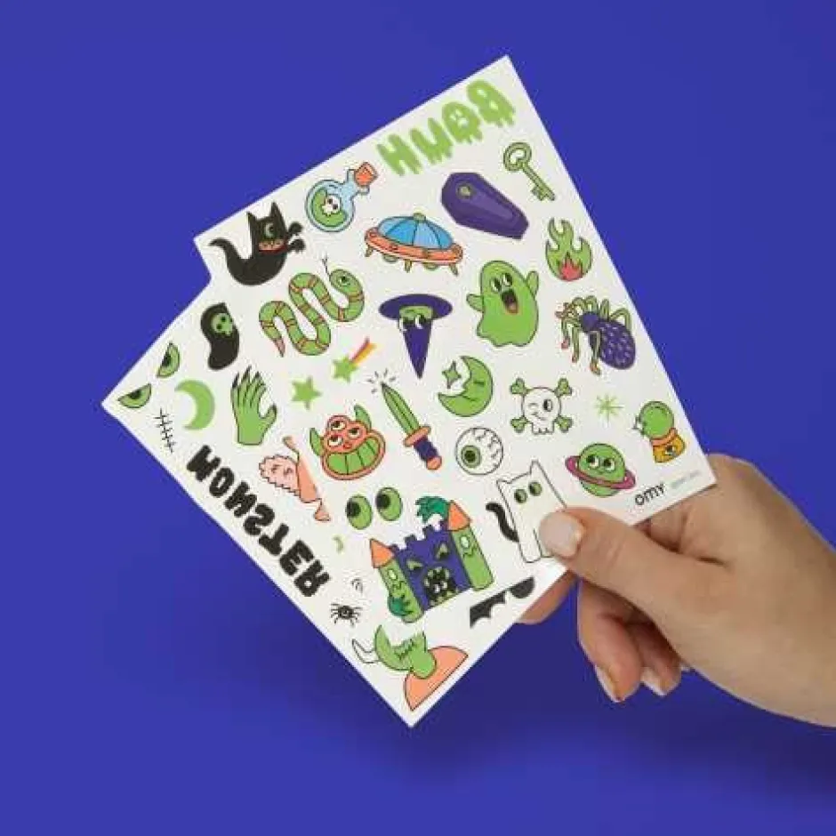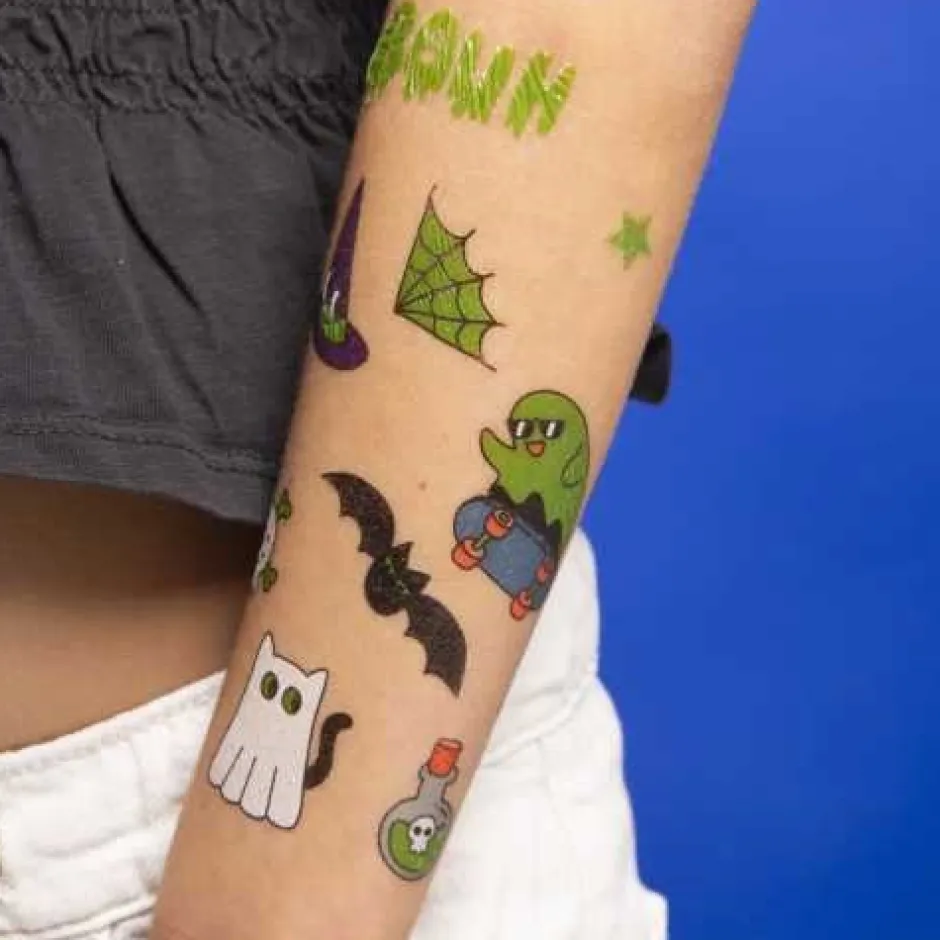 Esta lámina de 50 tatuajes temporales te lleva a un mundo lleno de fantasmas traviesos y otras criaturas divertidas (y ligeramente aterradoras).