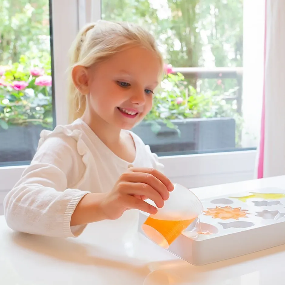 Este pequeño laboratorio de cosmética te permitirá crear 450 gramos de preciosas pastillas de jabón con forma de delfines, conchas y flores en los colores y aromas que elijas.