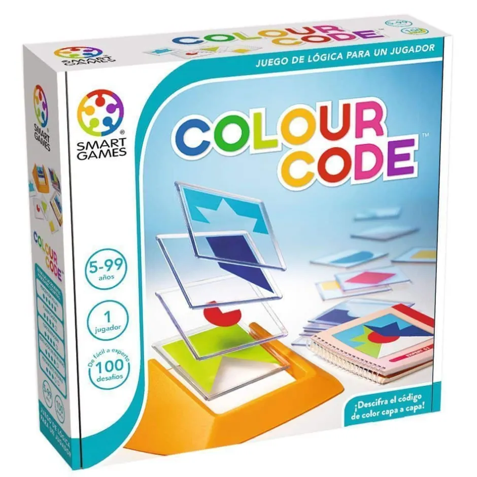 Elige un reto del cuadernillo: tendrás que obtener la misma figura geométrica que muestra el reto eligiendo correctamente entre las placas semitransparentes de formas y colores de que dispones y apilándolas en el orden y posición adecuados. Colour Code proporciona horas diversión y de concentración con 100 desafíos entre los que elegir. ¡Puedes jugar todo el día! Colour Code está compuesto por 18 formas de colores.