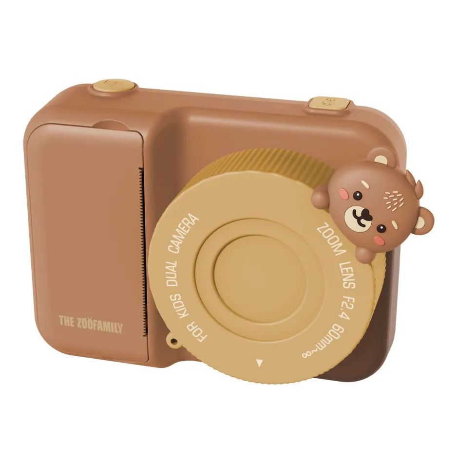 Te presentamos esta elegante cámara instantánea en forma de animalito para niños Esta adorable cámara instantánea imprime fotografías en blanco y negro directamente desde la cámara o las guarda para imprimirlas más tarde. Cuenta con una brillante pantalla a color de 3 pulgadas, protección de lente y buena resolución de impresión.