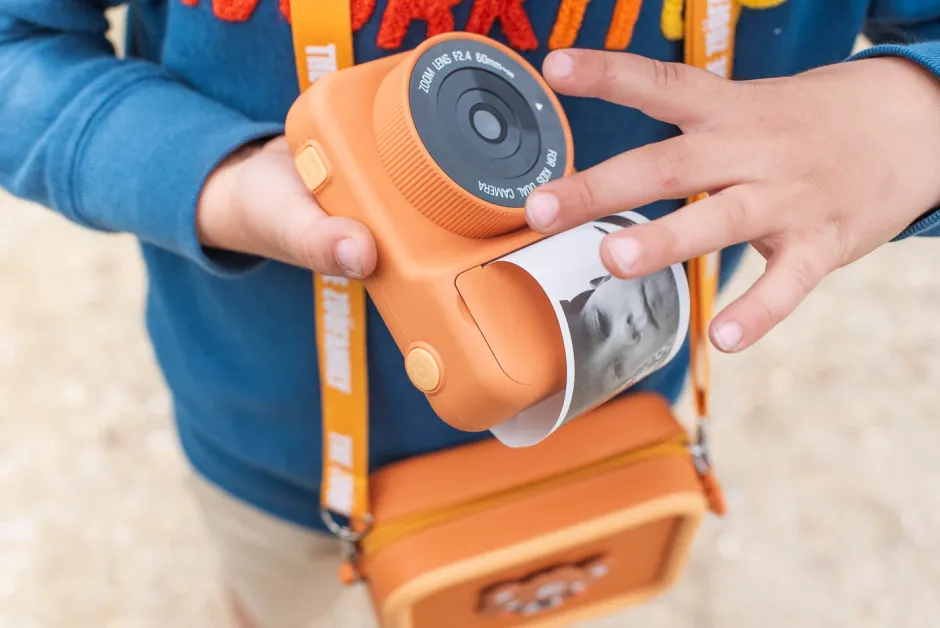 Perfecta para cumpleaños o Navidad, esta cámara viene con un cuaderno y lápices de colores para que los niños coloreen sus fotos en blanco y negro. La cámara también está disponible en lindos diseños de zorros, dinosaurios y osos y además incluye pegatinas imaginativas y de dibujos animados. ¡Imprime en sólo 3 segundos! En comparación con las cámaras instantáneas en color convencionales, nuestra cámara cuesta solo 0,02 € por impresión en lugar de 1 € por impresión habitual. También puedes elegir si deseas imprimir la foto inmediatamente, guardarla o imprimirla más tarde. Nuestro papel de impresión no contiene BPA ni BPS y, por lo tanto, es seguro para su hijo y para el medio ambiente.
