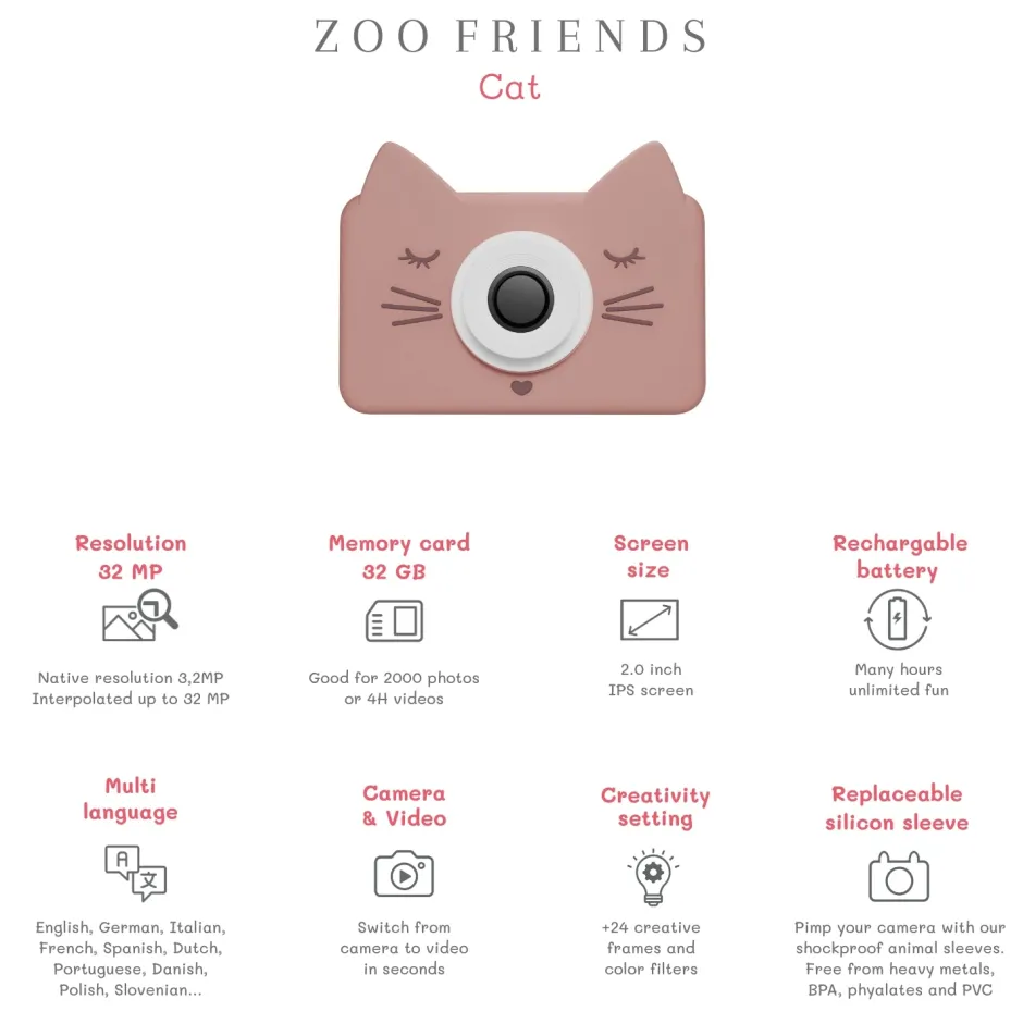 La Zoo Friends es una cámara digital con forma de animalitos ideal para los niños. Su cálida carcasa de silicona les anima a hacer fotos. La cámara está diseñada ergonómicamente para que las manos de los más pequeños puedan sujetarla y manejarla con facilidad.