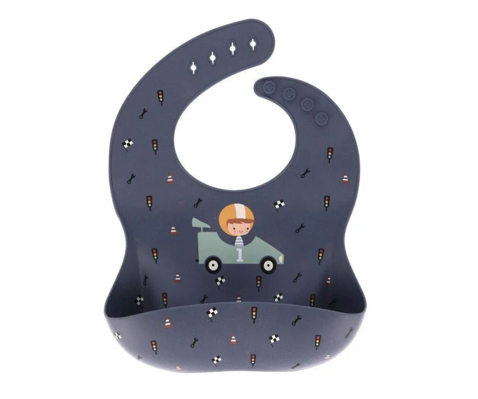 Babero de silicona con un bolsillo recogemigas para evitar que caiga la comida a la ropa.