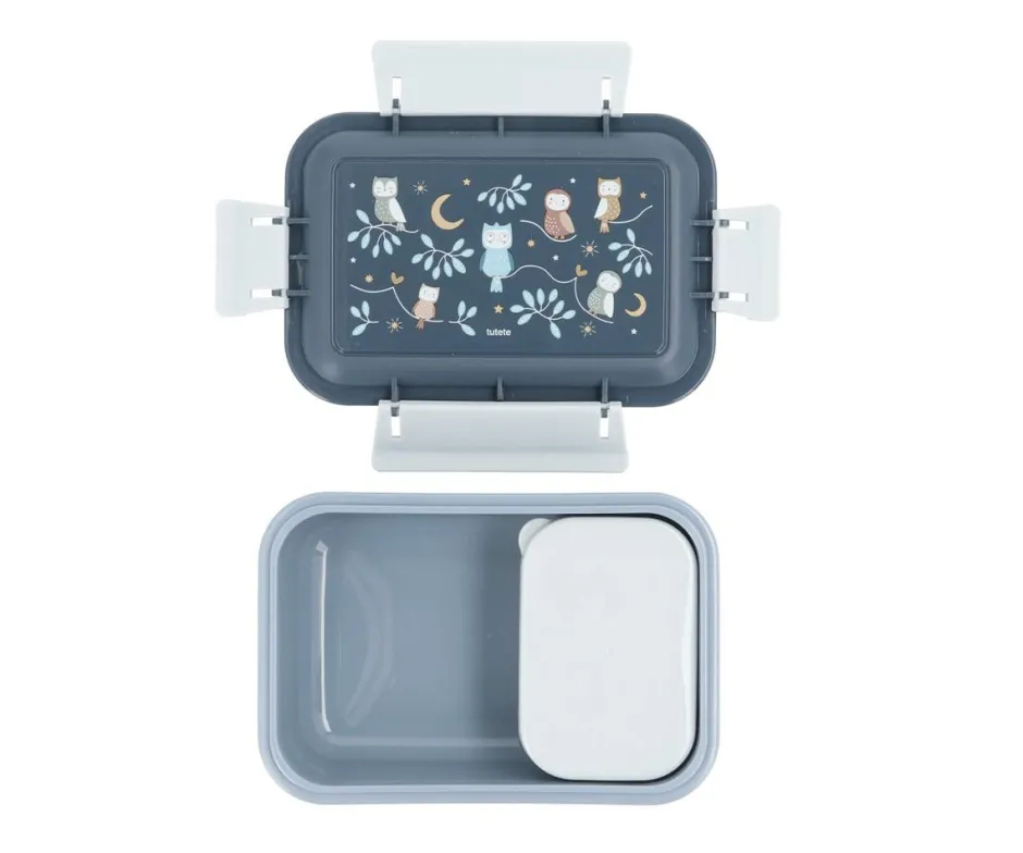 Fiambrera bento para llevar almuerzo al cole y con una cajita interior separadora, con un tenedor, para llevar también la fruta..