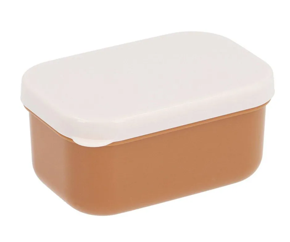 Esta pequeña cajita de fruta con tenedor, está pensaba para meter dentro de otra caja de almuerzo más grande y llevar la fruta o pequeños snacks separados del resto de almuerzo.