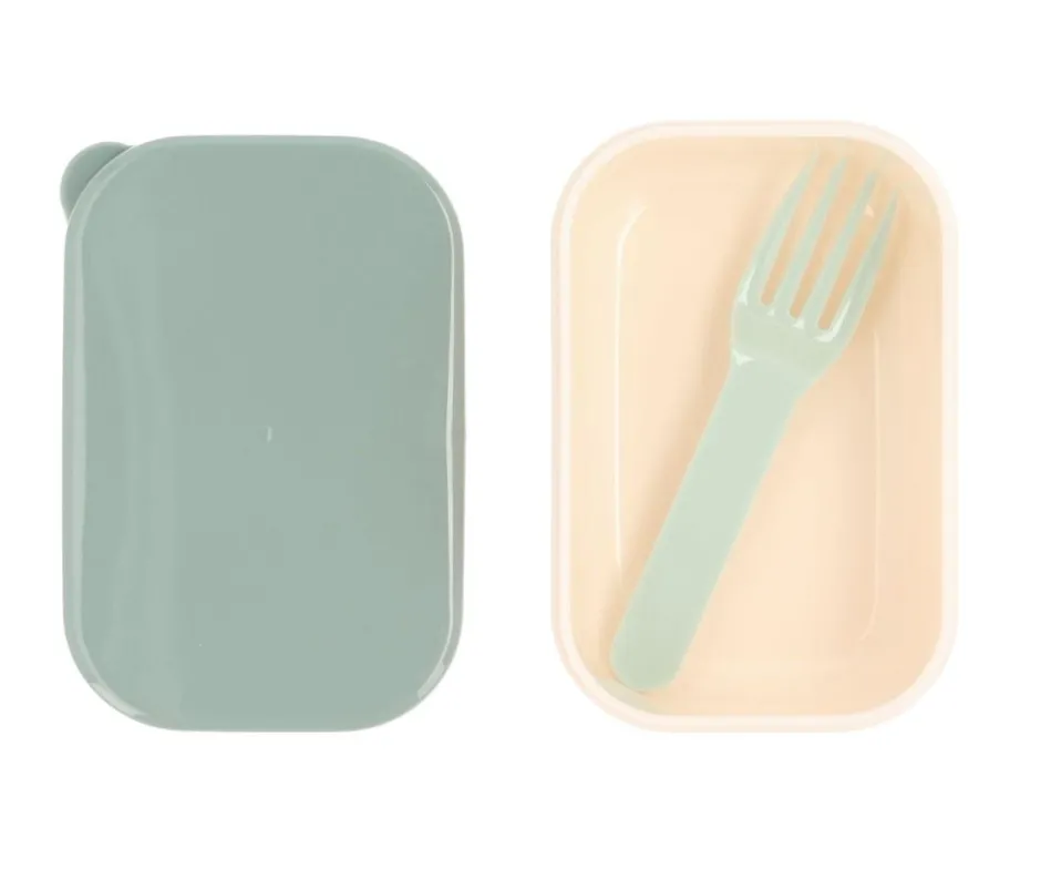 Esta pequeña cajita de fruta con tenedor, está pensaba para meter dentro de otra caja de almuerzo más grande y llevar la fruta o pequeños snacks separados del resto de almuerzo.