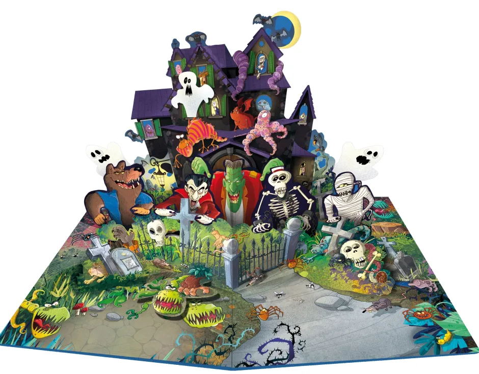 En este espectacular libro en el que cada rincón de la mansión encantada cobra vida gracias a las páginas desplegables. El texto y las ilustraciones están llenos de detalles con humor para que la visita a la mansión no solo resulte «aterradora» sino también desternillante.