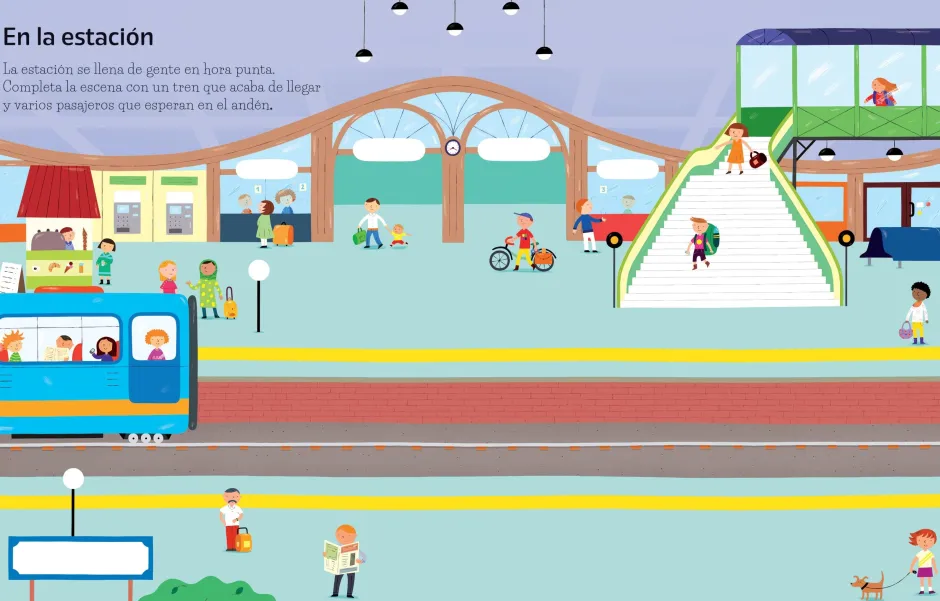 ¡Todos a bordo! Este libro trae más de 150 pegatinas diversas para que los pequeños den vida a las escenas representadas. Hay pegatinas dedicadas por entero a los diferentes trenes que existen, como de dos pisos, de vapor, de mercancías, monorraíles. Y otras muchas pegatinas con las que los niños podrán crear su propia locomotora.