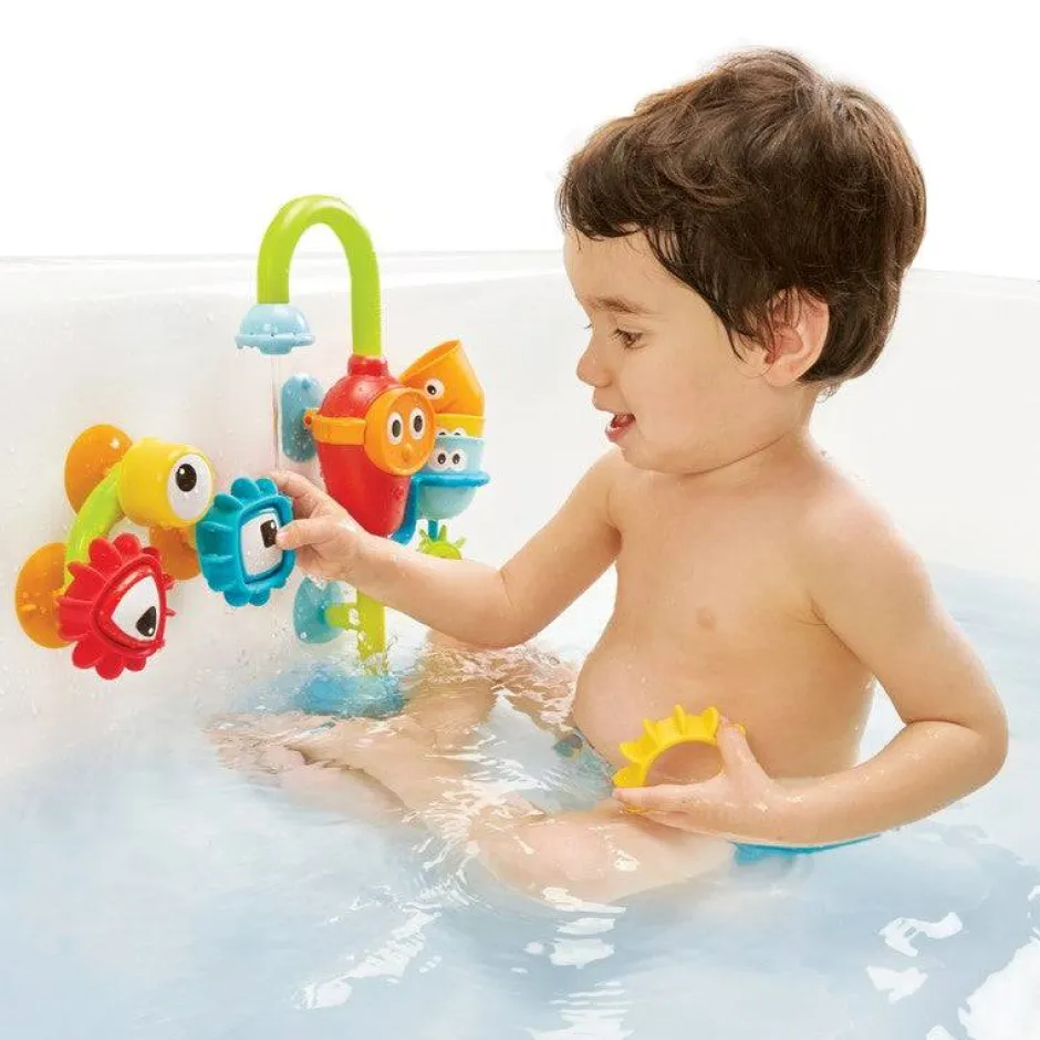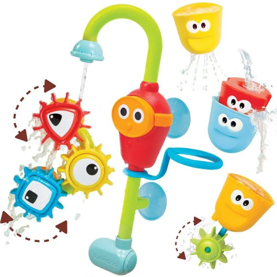 Más de 10 actividades diferentes de agua. Encaja formas y colores y coloca las diferentes formas en el lugar correcto para ver girar todos los engranajes a la vez. 3 vasitos intercambiables, cada uno con un efecto de agua diferente.