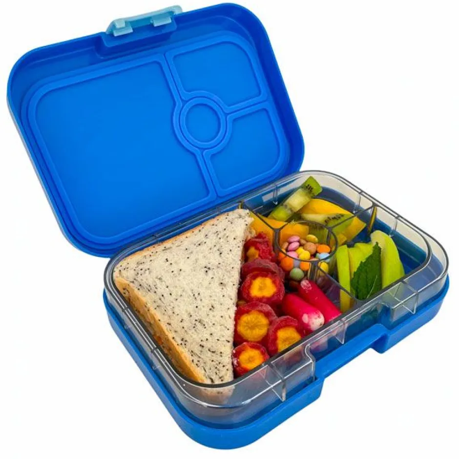 La Fiambrera Yumbox Original es un tupper para llevar los alimentos de la comida o merienda de los niños en un mismo sitio sin que llegue a mezclarse.
