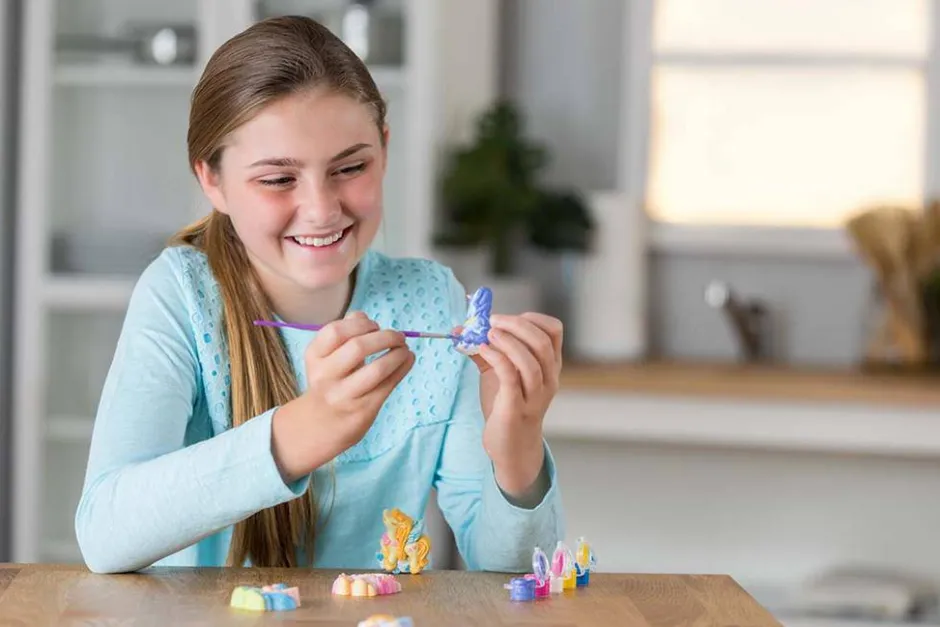 Píntalos con los colores que prefieras y hazlos brillar con un toque de purpurina. Una vez acabados, podrás convertirlos en divertidos imanes para la nevera, en pins para la mochila o simplemente, en figuras para decorar o regalar a tus amigos.