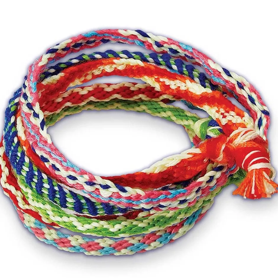 Este set de Pulseras de la Amistad Brillantes contiene todo lo necesario para que puedas crear pulseras de los colores y diseños que más te gusten. Con la ayuda de la rueda y colocando el patrón que quieras utilizar el proceso es mucho más sencillo. Hay dos madejas de hilo que brillan en la oscuridad para hacerlas mucho más divertidas.
