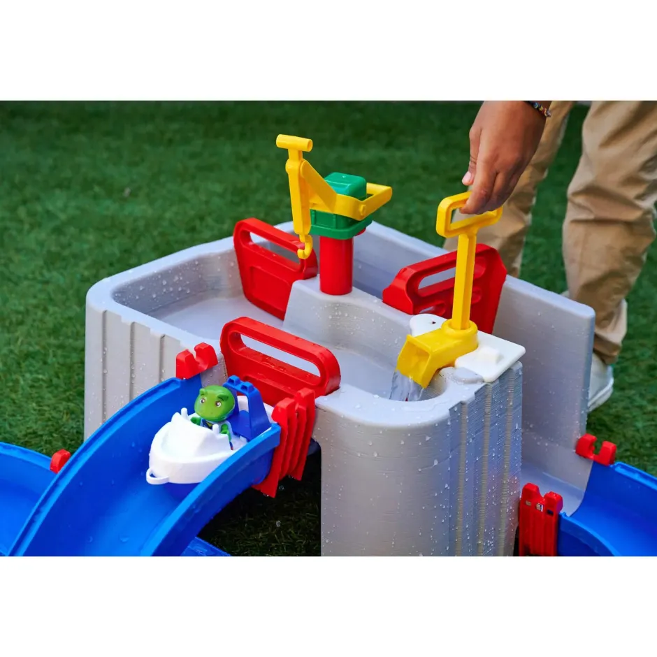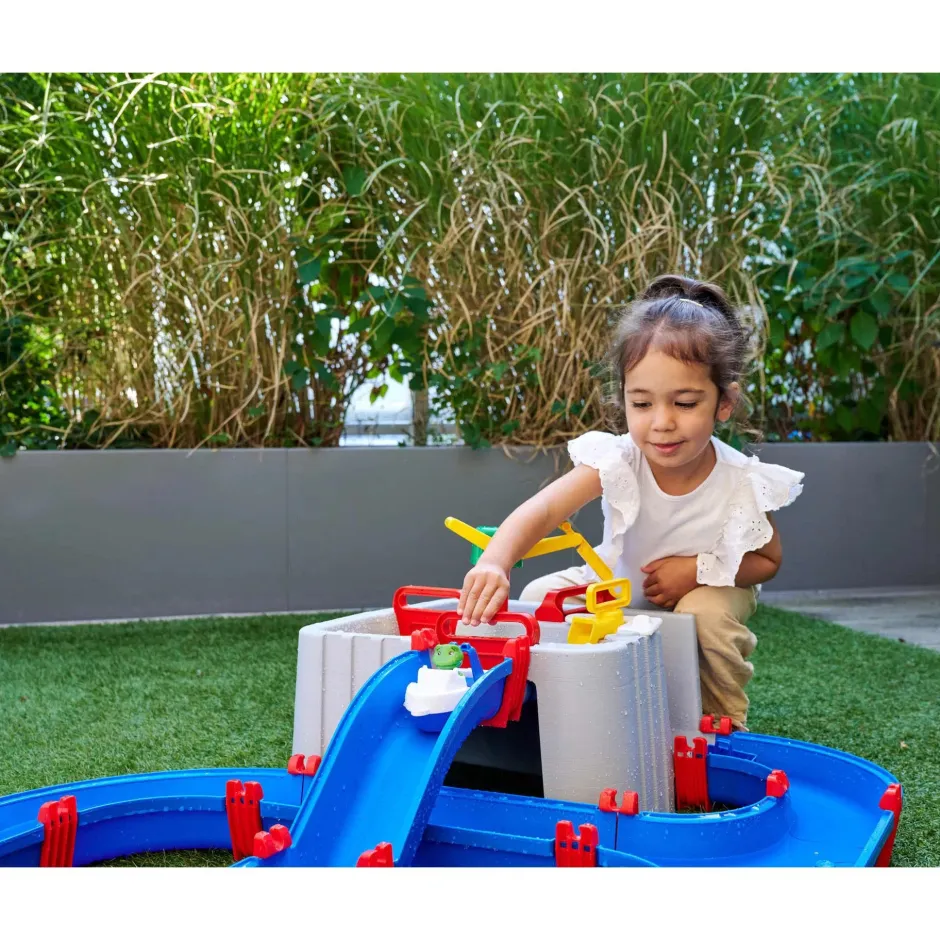 Emocionante estación acuática – La vía acuática del puerto con detalles lúdicos como una grúa, una potente bomba de agua y las compuertas impermeables y típicas de AquaPlay harán las delicias de los niños y niñas a partir de 3 años.