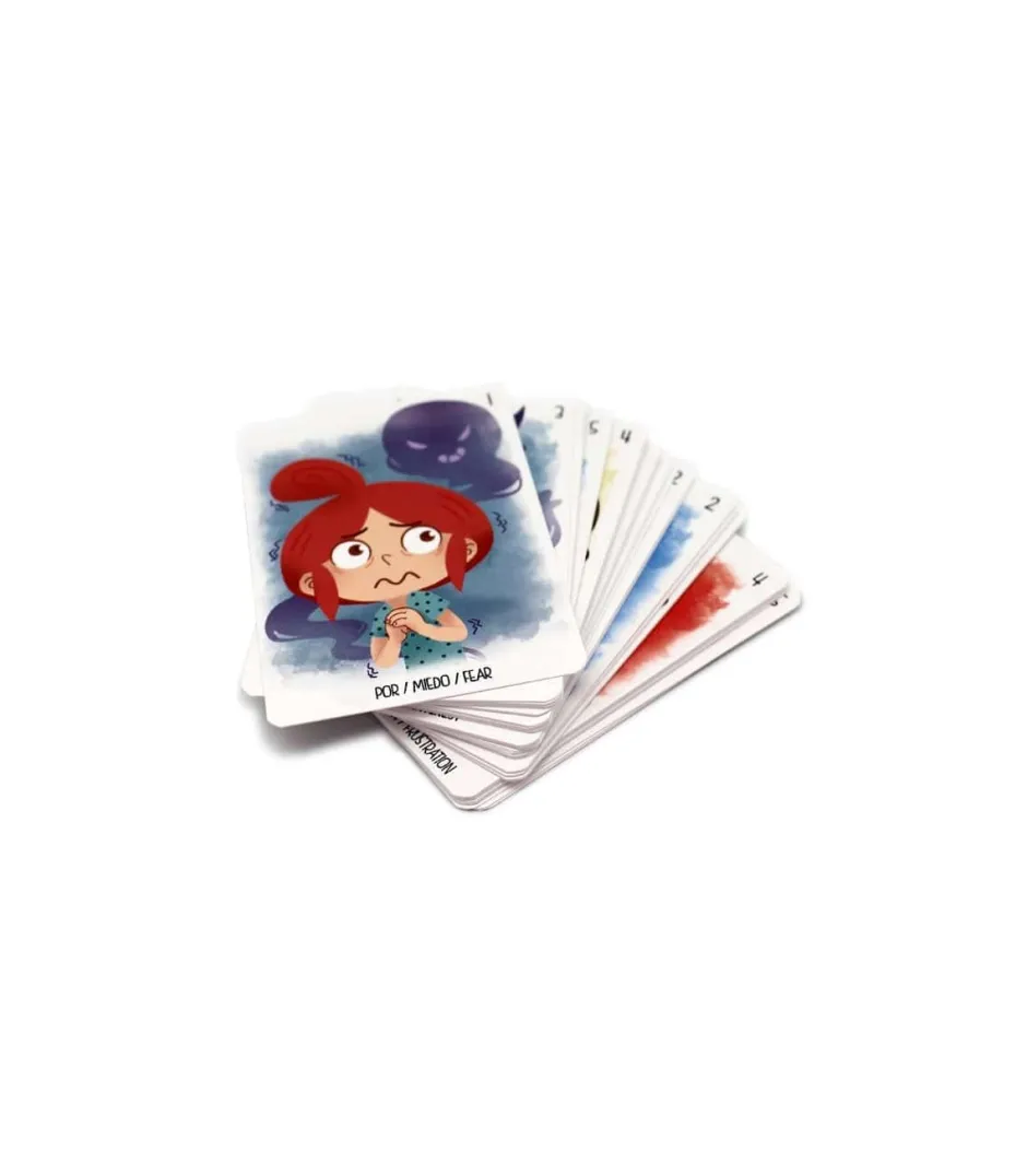 - 40 cartas asociadas a un color según la emoción. Felicidad-verde, Alegría-amarillo, Amor-rosa, Ira-rojo, Tristeza-azul, Miedo-gris y Sorpresa-lila.