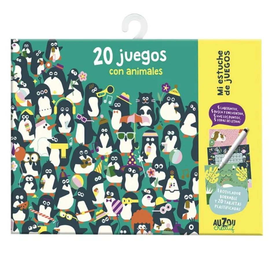 Incluye 20 tarjetas plastificadas y un rotulador borrable.