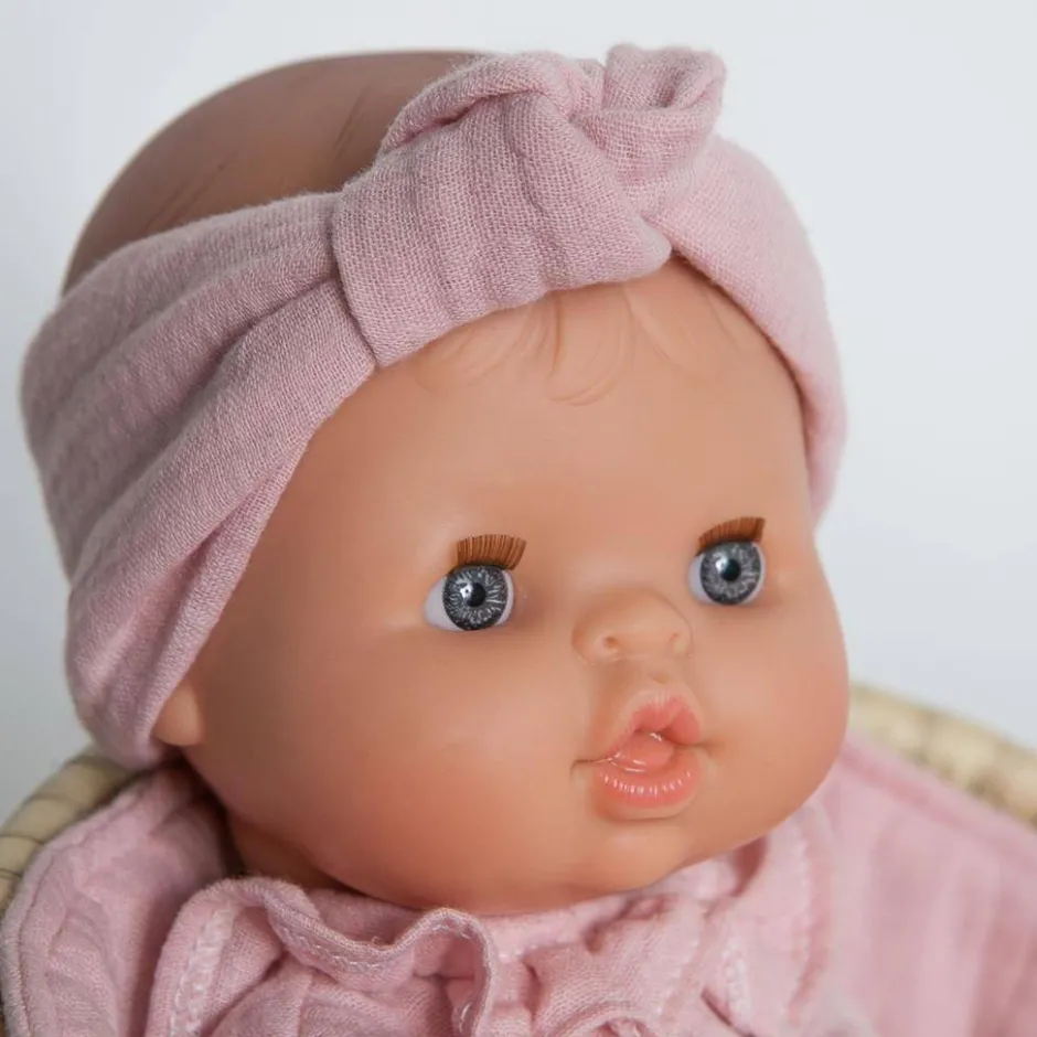 Muñeca bebé Bobble rosa niña con piel clara, ojos azules y pestañas, de Barrutoys.