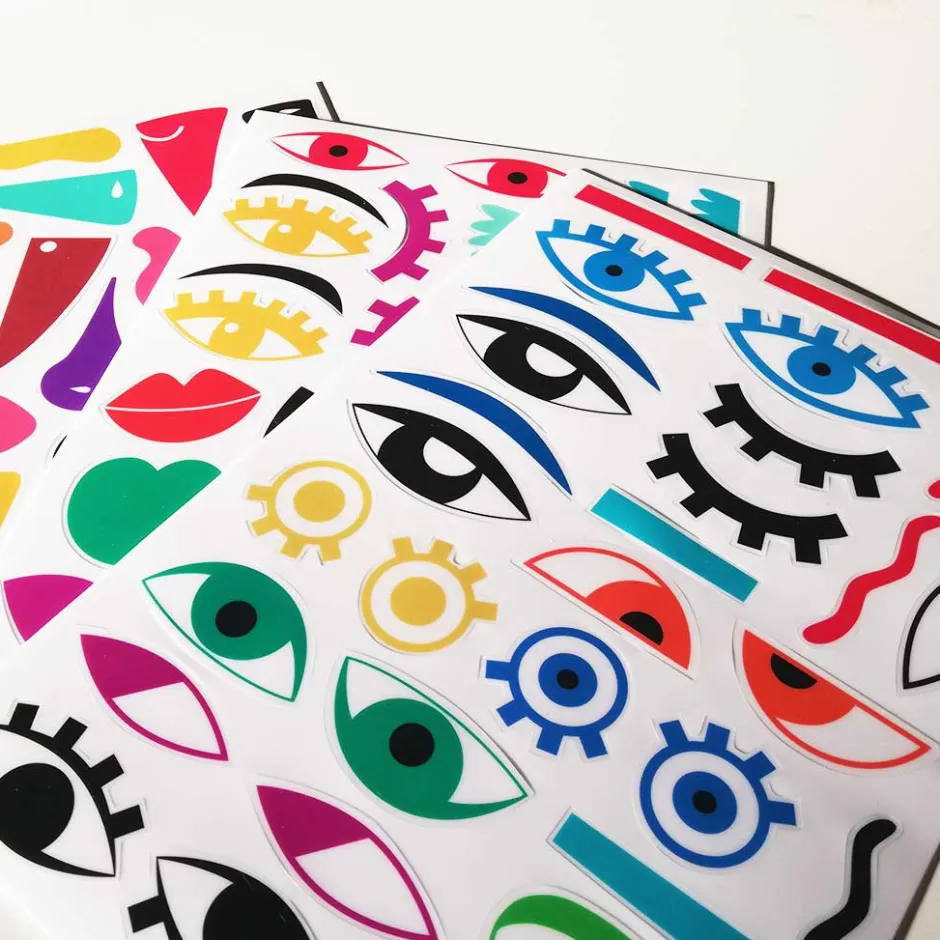 Este set cuenta con 3 láminas resistentes de sticker de silicona con variantes de expresiones para que puedas REUTILIZAR muchas veces y darle vida a los IMANIX.