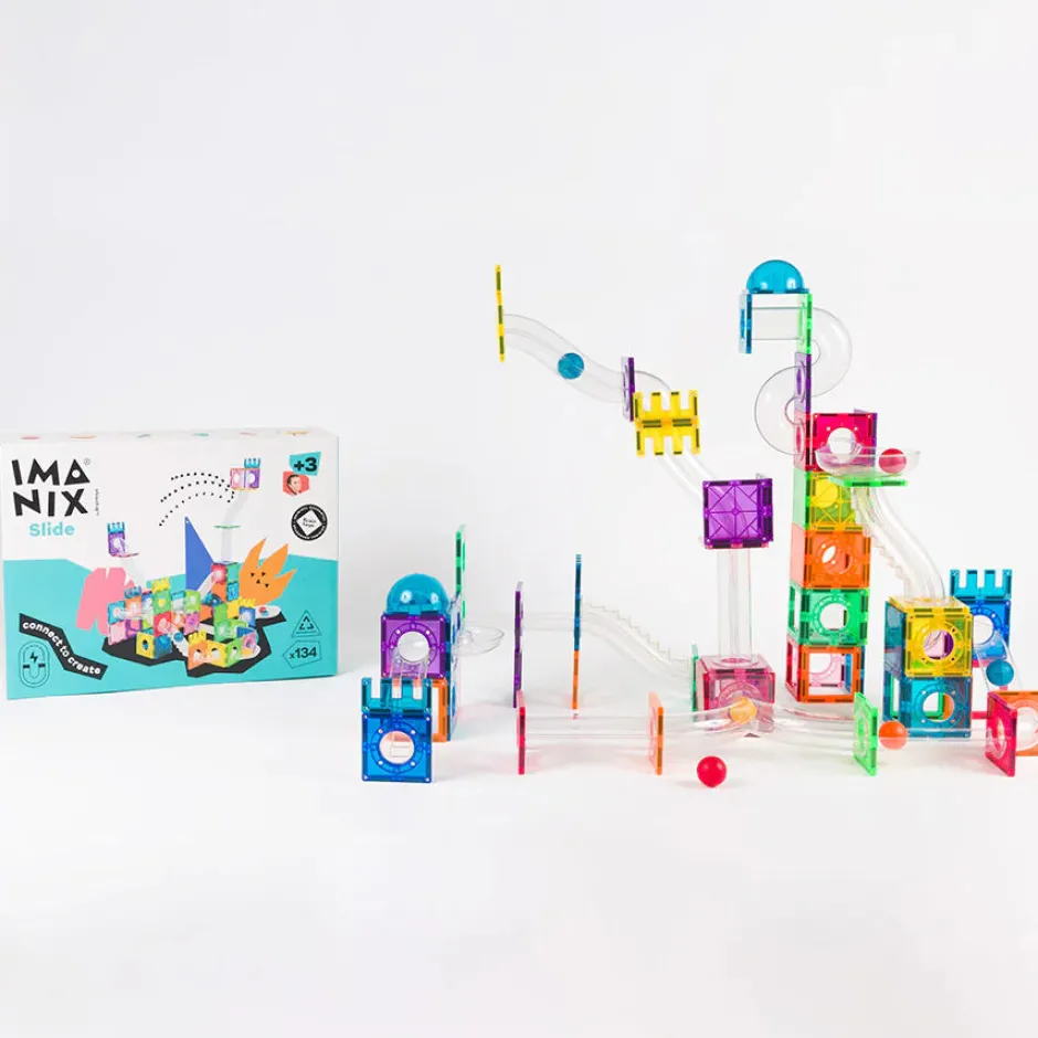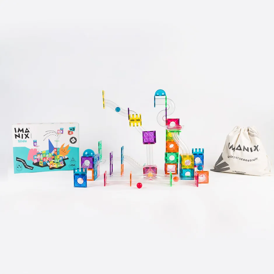 Imanix es uno de los juguetes que más gusta a los bizcochitos y bizcochitas. Miles de ellos ya han jugado y siguen juguando con ellos. Los Imanix Tobogán de 134 piezas son una opción ideal para aquellos que ya han jugado con Imanix y quieren seguir disfrutando del juego libre con más piezas y formas de juego.