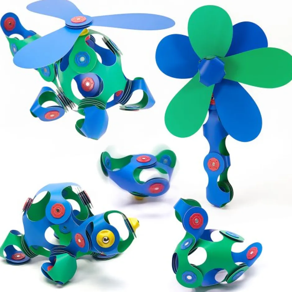 30 piezas en 8 formas únicas de CLIXO y una guía de inicio rápido. Con este pack se pueden construir hélices o molinos porque contiene 3 piezas en forma de spinner para que las piezas puedan girar sobre si mismas.