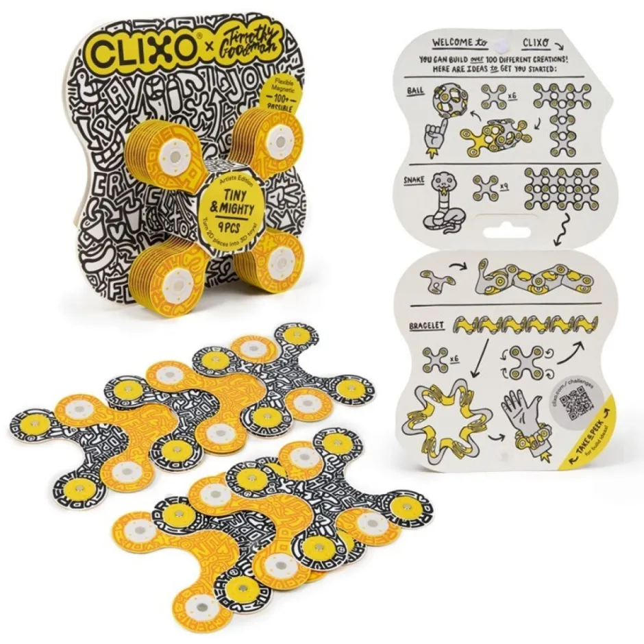 Contiene 9 piezas de la característica forma Quad de CLIXO para realizar más de 100 ocurrentes creaciones magnéticas.