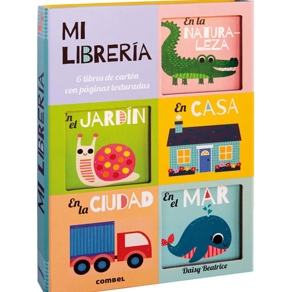 Una caja con un práctico cierre de imán que incluye seis libros con imágenes y palabras que introducirán a los pequeños lectores en el mundo que los rodea: el mar, la naturaleza, la granja, los objetos y los animales de la casa, de la ciudad y del jardín.