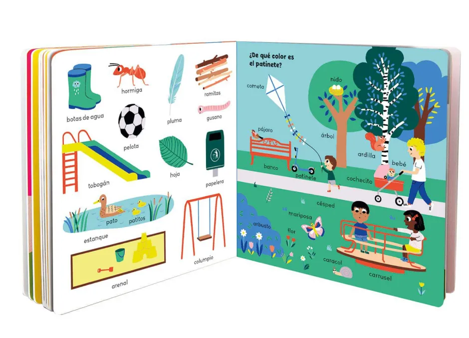 Una recopilación actual de términos cotidianos en un libro todo cartón con más de 250 palabras básicas.