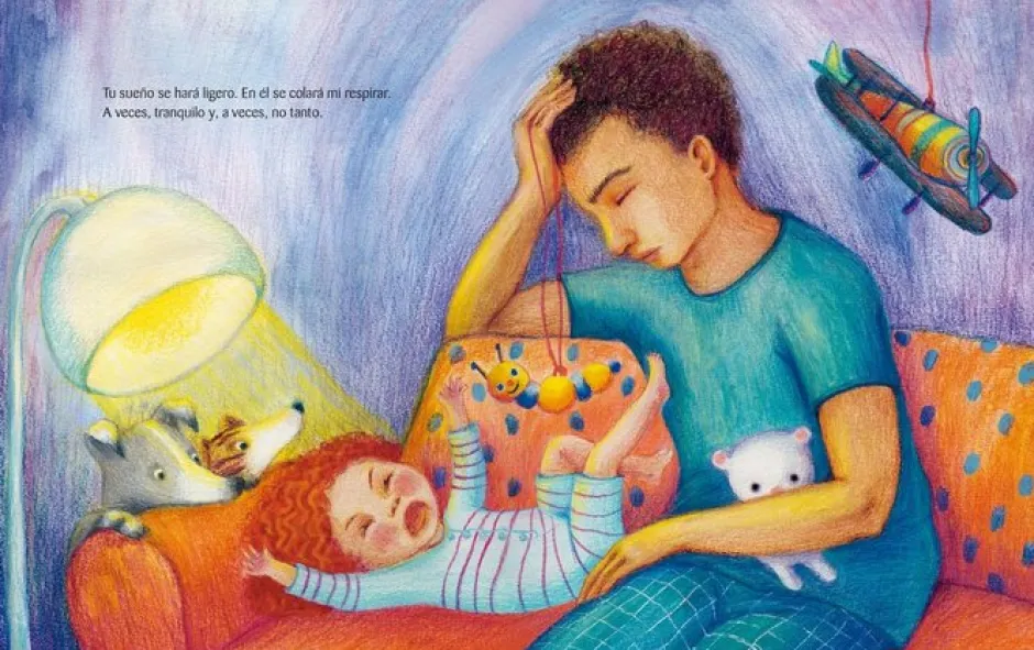 Poético y evocador. Un bello título que logra transmitirnos la ternura y el calor de los brazos protectores de un padre, a la vez que la infinita curiosidad y admiración de su hija. Escudo protector, compañero de juegos e impulsor de la creatividad y la imaginación desmedidas? un padre es eso y mucho más.